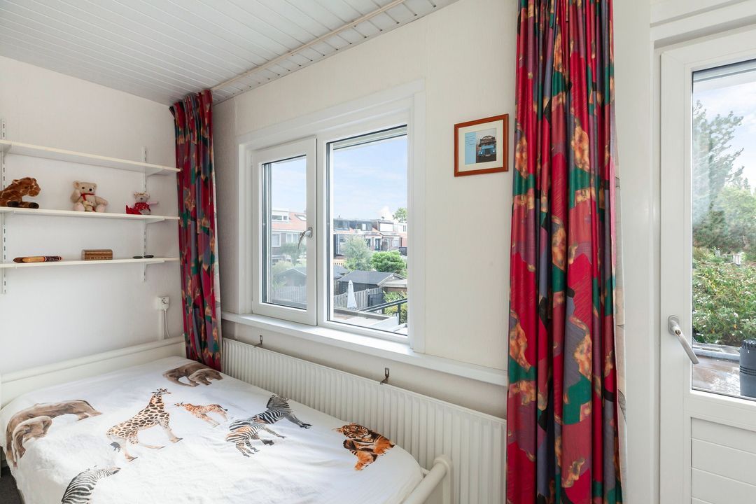 Aan de achterzijde van de woning bevindt zich een twee slaapkamer met eveneens een kunststof kozijn, en voorzien van praktische rolluiken voor extra comfort.