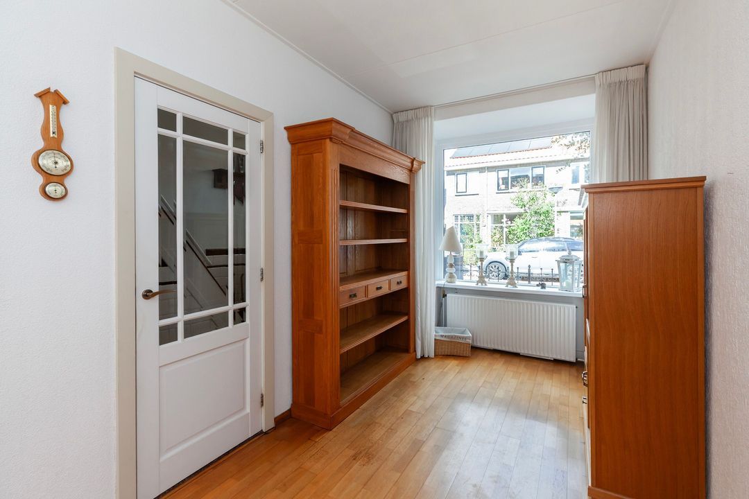 Via de keurig aangelegde voortuin met klassiek smeedijzeren hekwerk betreedt u de woning. U komt binnen door de originele voordeur met karakteristieke glas-in-loodramen in een ruime hal met authentieke wandbetegeling en glas-in-looddetails. In de hal bevinden zich de meterkast (voorzien van 7 groepen, fornuisgroep, aardlekschakelaar) en handige opbergruimte onder de trap.