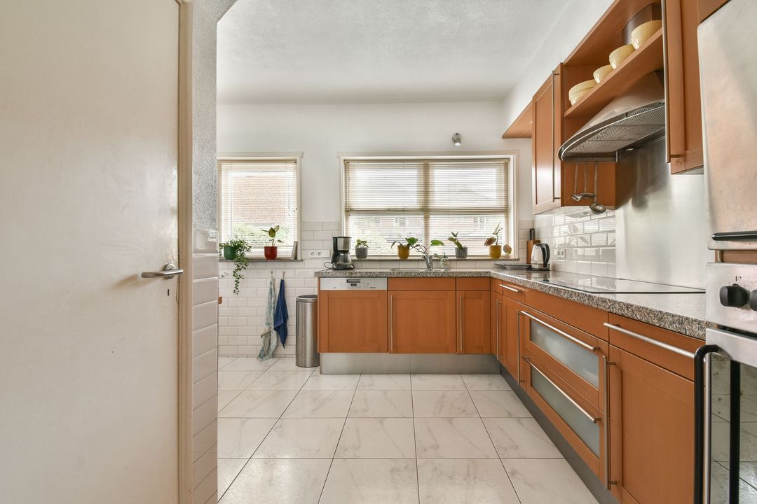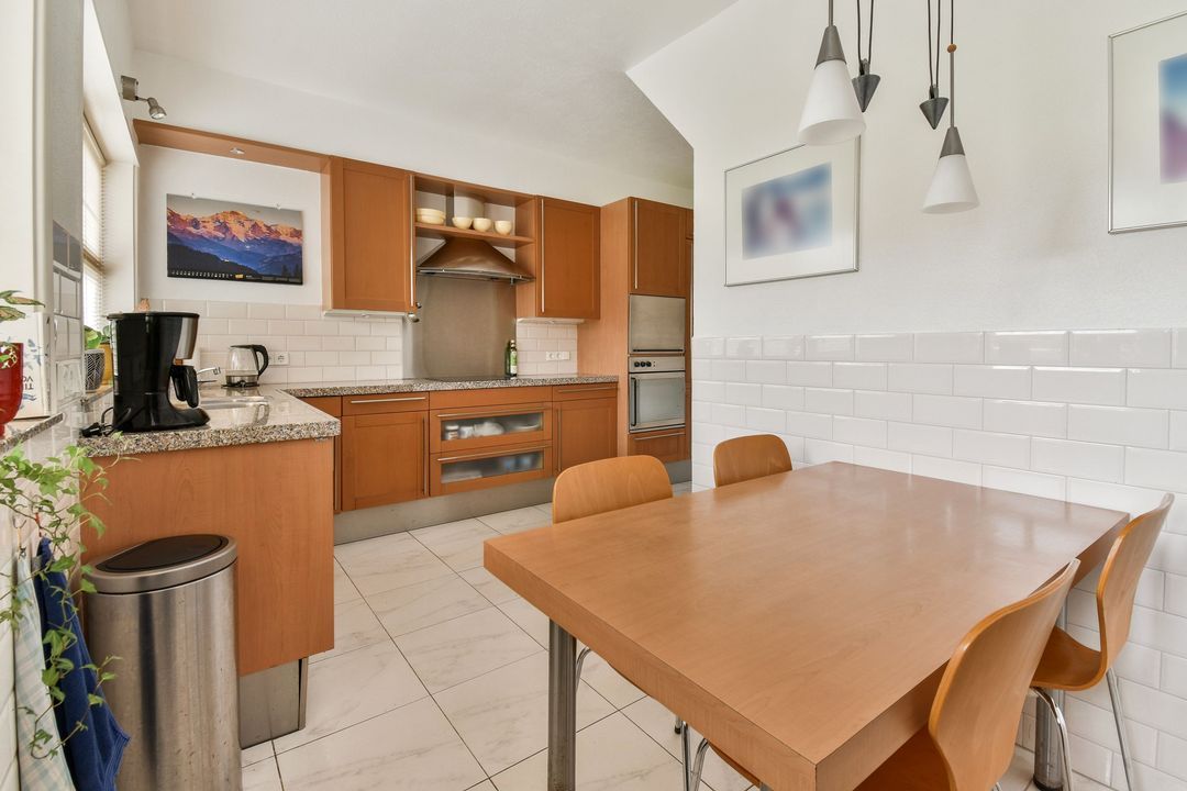 De woonkeuken ligt aan de achterzijde van de woning waardoor u tijdens het koken uitkijkt op de mooie groene tuin. De keuken heeft een houtlookinrichting met een natuurstenen aanrechtblad en sfeervolle metrotegeltjes en beschikt over een inductiekookplaat met RVS afzuigkap, een vaatwasser, een koelkast, een vriezer, een oven en een magnetron. Een diepe kelderkast is ideaal als provisiekast of wijnkelder. Via een deur loopt u zo de tuin in waarbij u een heerlijk ontbijtje kunt nemen op het terras aan de woning. De tuin is aangelegd met vaste planten welke het gehele jaar door voor een wisselende bloei zorgen. Er is nog een terras midden in de tuin waar u ook heerlijk kunt genieten en achterin de tuin is een zeer ruime stenen berging met grote dakkoepel van maar liefst 35 m². Ideaal als werkruimte, thuiswerkplek of extra ontspanningsruimte.. Door de ruime afmeting van de tuin kunt u de gehele dag van het zonnetje genieten.