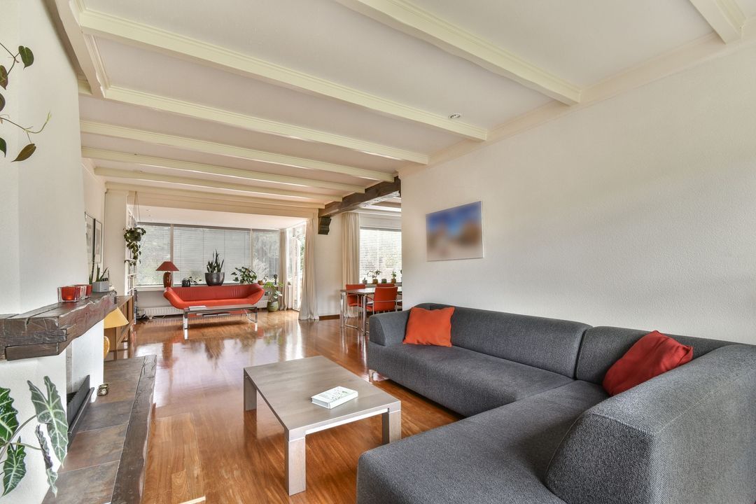 Deze woning beschikt over een echte living! Riant van opzet en het licht komt aan alle kanten via de grote ramen naar binnen. De open haard zorgt voor gezelligheid en warmte. Aan de achterzijde zijn twee openslaande deuren naar de tuin. Op de vloer ligt een mooie parketvloer welke doorloopt naar de hal en de balken aan het plafond zorgen voor extra sfeer.