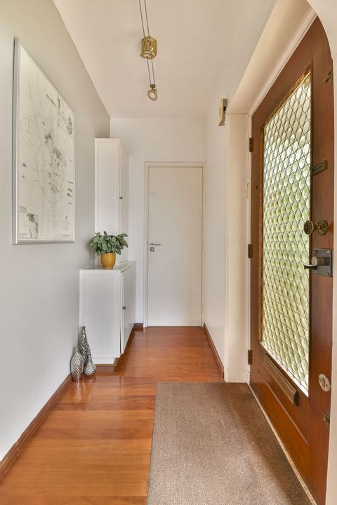 Via de prachtige groene voortuin loopt u zo naar de zijentree van de woning. U komt binnen in een ruime hal met veel lichtinval door de glazen pui.