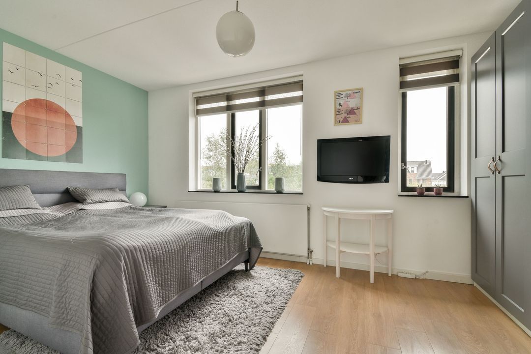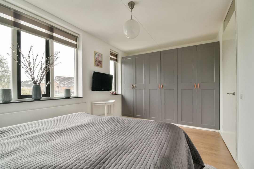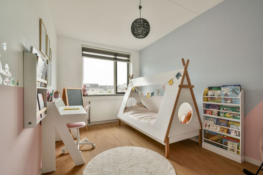 De 5e slaapkamer bevindt zich aan de voorzijde van de woning. Door de doorlopende erker en het dakraam is ook hier weer een mooie kamer ontstaan. Ook hier is weer extra kastruimte gecreëerd.