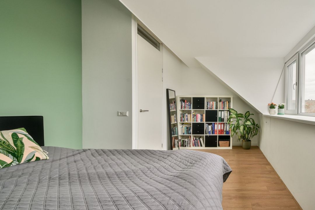Op zolder is in 2022 een mooie indeling gemaakt. Zo is in 2021 aan de achterzijde van de woning is een groot kunststof dakkapel met rolluiken en horren geplaatst. Hier is een grote kamer gerealiseerd. Deze kamer heeft veel bergruimte achter de schotten.