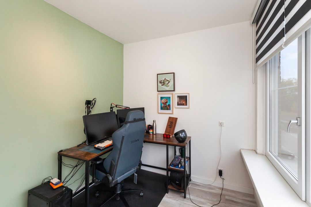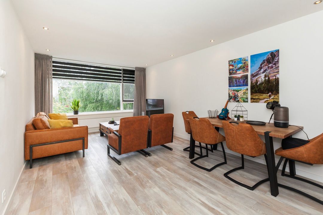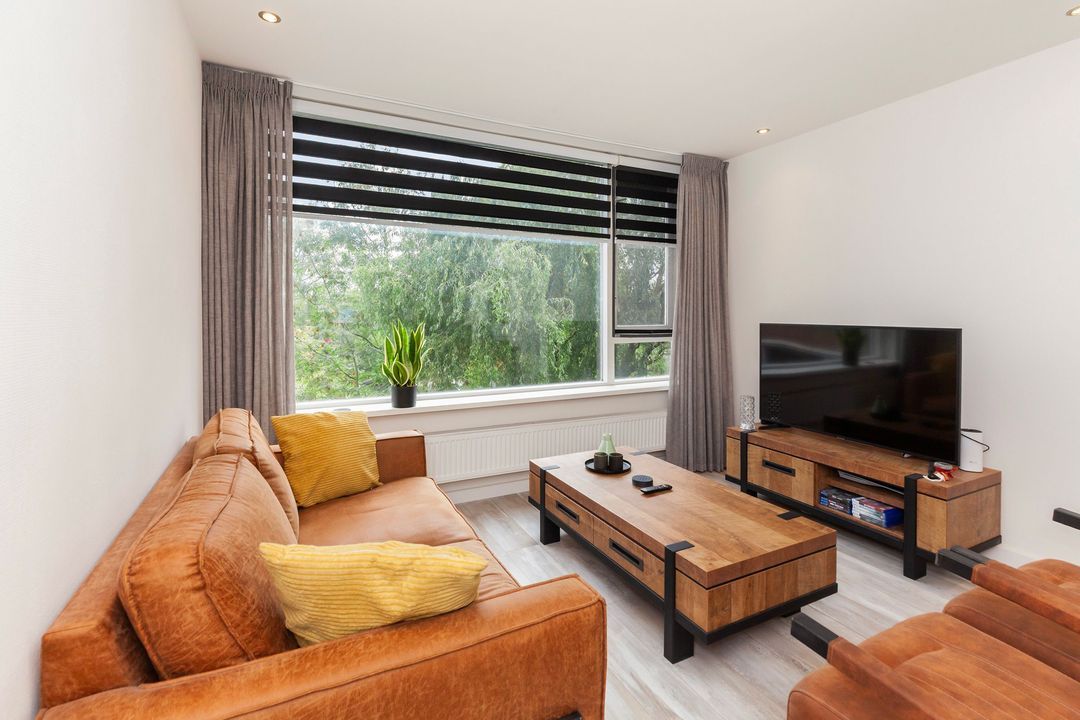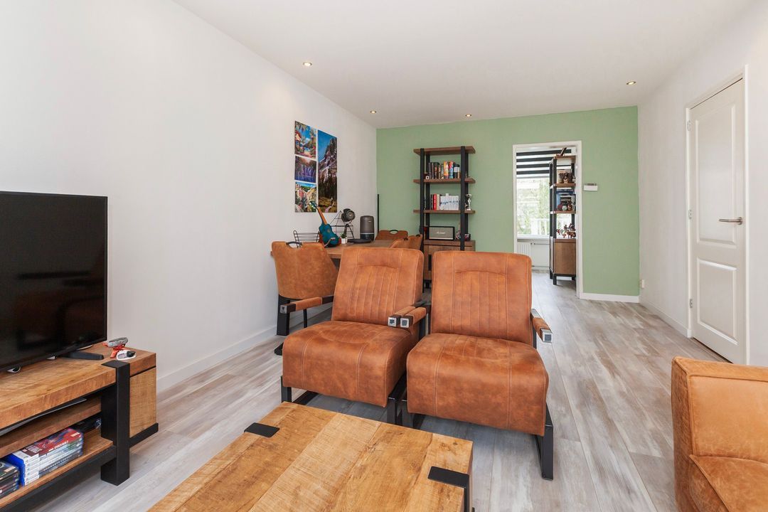 De woonkamer is een gezellige kamer met een white wash laminaatvloer welke is doorgelegd in het gehele appartement en strakke glasvezel wanden. In het plafond zijn sfeervolle spots verwerkt. Aan de woonkamer grenst een slaap/werkkamer. Zowel in deze kamer als de keuken is in 2021 een nieuw kunststof kozijn met HR ++ beglazing geplaatst.