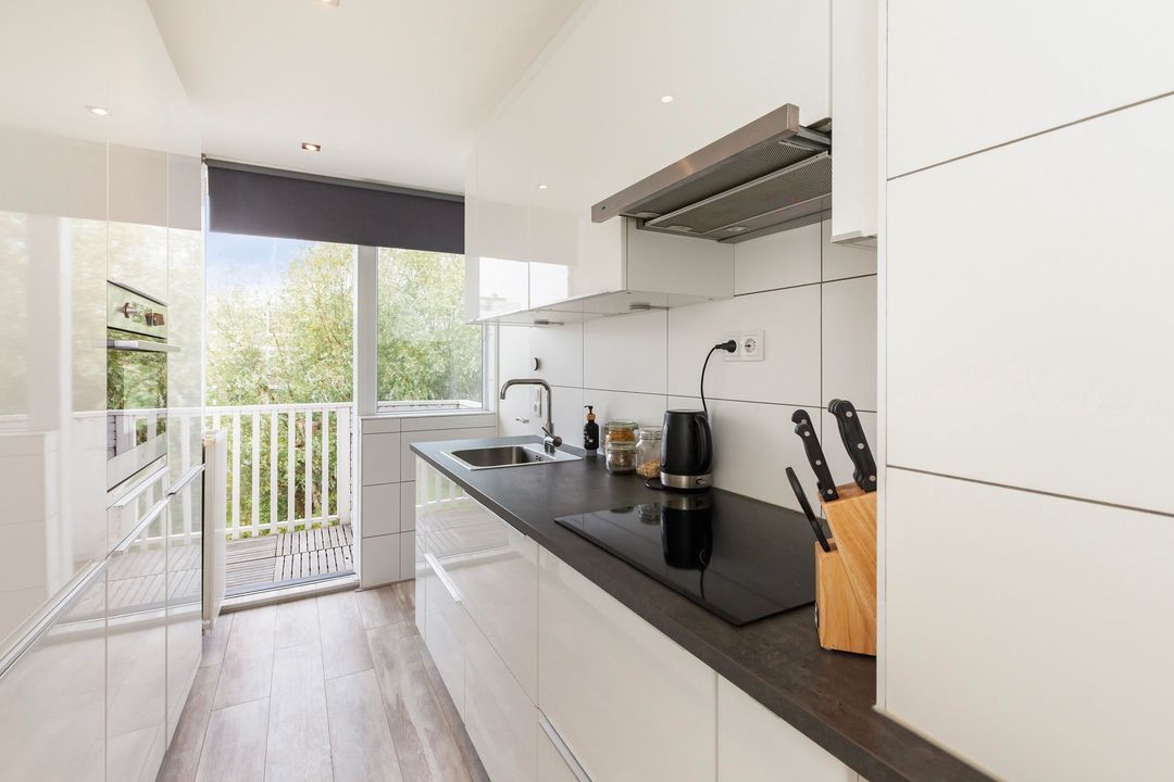 De moderne keuken (2018) is van alle gemakken voorzien: een inductie kookplaat met vlakschermafzuigkap, een vaatwasser, een koelkast, een vriezer en een combi-oven. Vanuit de keuken loop je zo het zonnige balkon op. Hier kan je 's middags heerlijk van het zonnetje genieten.