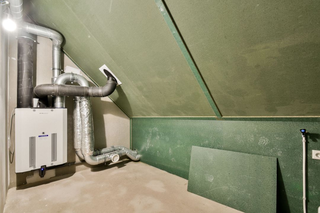 De zolderverdieping heeft een 3e slaapkamer, veel bergruimte en de berging geeft plaats aan alle installaties.